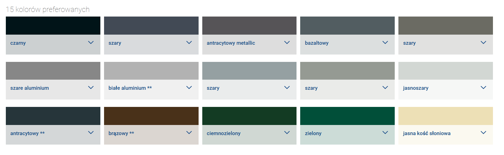 Ocieplane bramy segmentowe LPU i drzwi boczne są dostępne standardowo w kolorze RAL 9016 (biały), dodatkowo w 15 niedrogich kolorach preferowanych i niemal 200 kolorach z palety RAL, a także w wielu kolorach z palet NCS oraz DB. Powierzchnia Sandgrain jest oferowana w 3 kolorach preferowanych do wyboru.